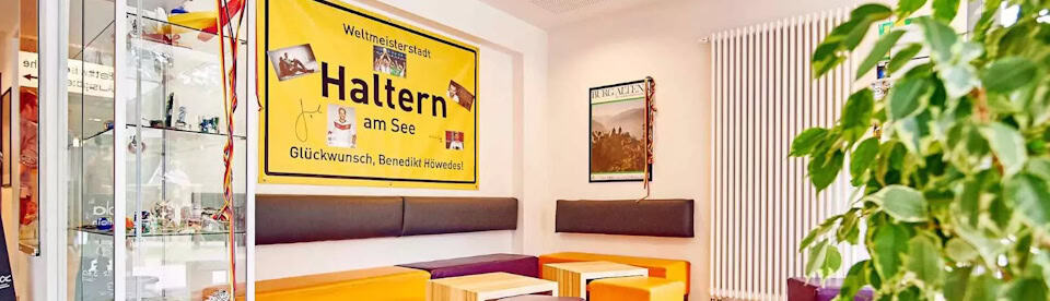 Die moderne Sportjugendherberge Haltern am See ist der perfekte Ort für Sportfreaks und Wasserratten. Unmittelbar vor der Tür laden das schöne Seebad mit Natursandstrand und Strandkörben sowie Wassersportmöglichkeiten zu zahlreichen Aktivitäten ein. Zur Unterkunft selbst gehören das Haupthaus und das „Römische Dorf“ bestehend aus sechs kleineren Häusern, sowie einem großen Außengelände mit tollen Spielplätzen und -geräten. Du bist in modernen Mehrbettzimmern untergebracht, die alle über ein eigenes Bad mit Dusche und WC verfügen. Die einzelnen Gruppenräume und der große Speisesaal mit angrenzender Terrasse sind der optimale Lernspot oder laden einfach zum Chillen und Quatschen ein.